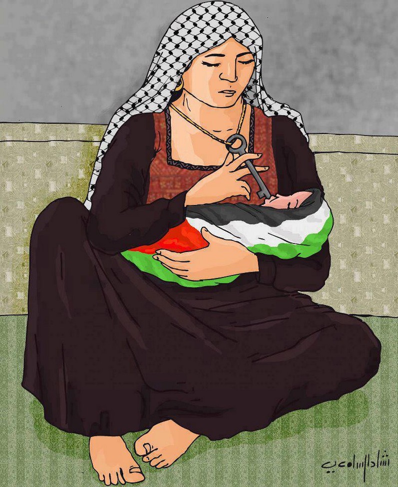A varie manifestazioni, come quella di Roma del 27 ottobre 2025, sono apparse immagini e modelli in scala maggiore di chiavi. Basta uno sguardo a capire la simbologia di tale oggetto: il ritorno a casa, l’appartenenza. A volte il collegamento è più diretto della semplice analogia, poiché sin dalla prima Nakba, nel 1948, molti cittadini palestinesi sfollati hanno portato con sé le chiavi della propria casa.